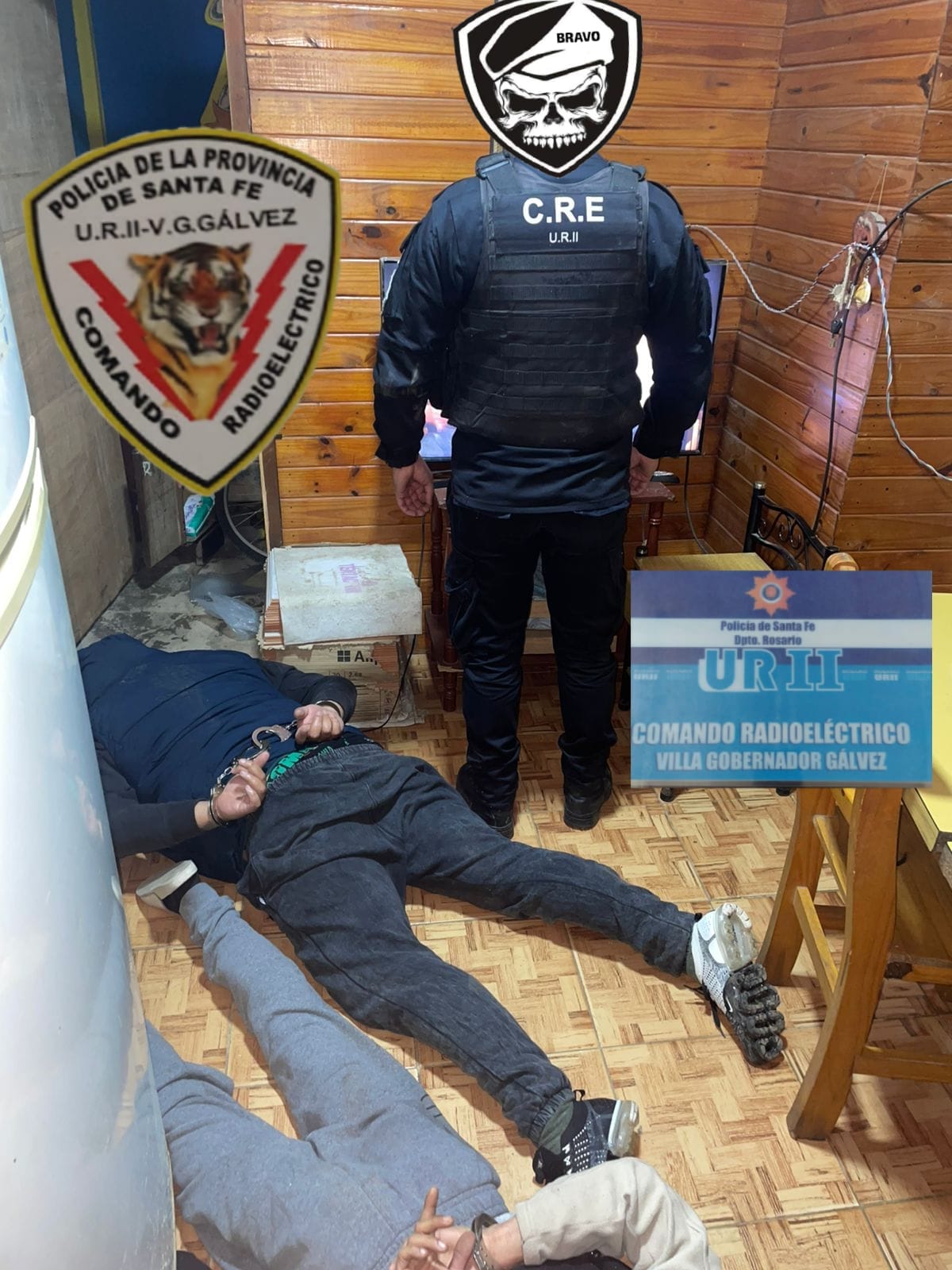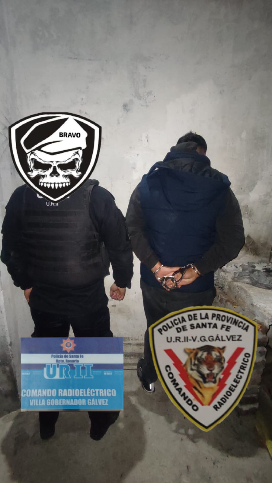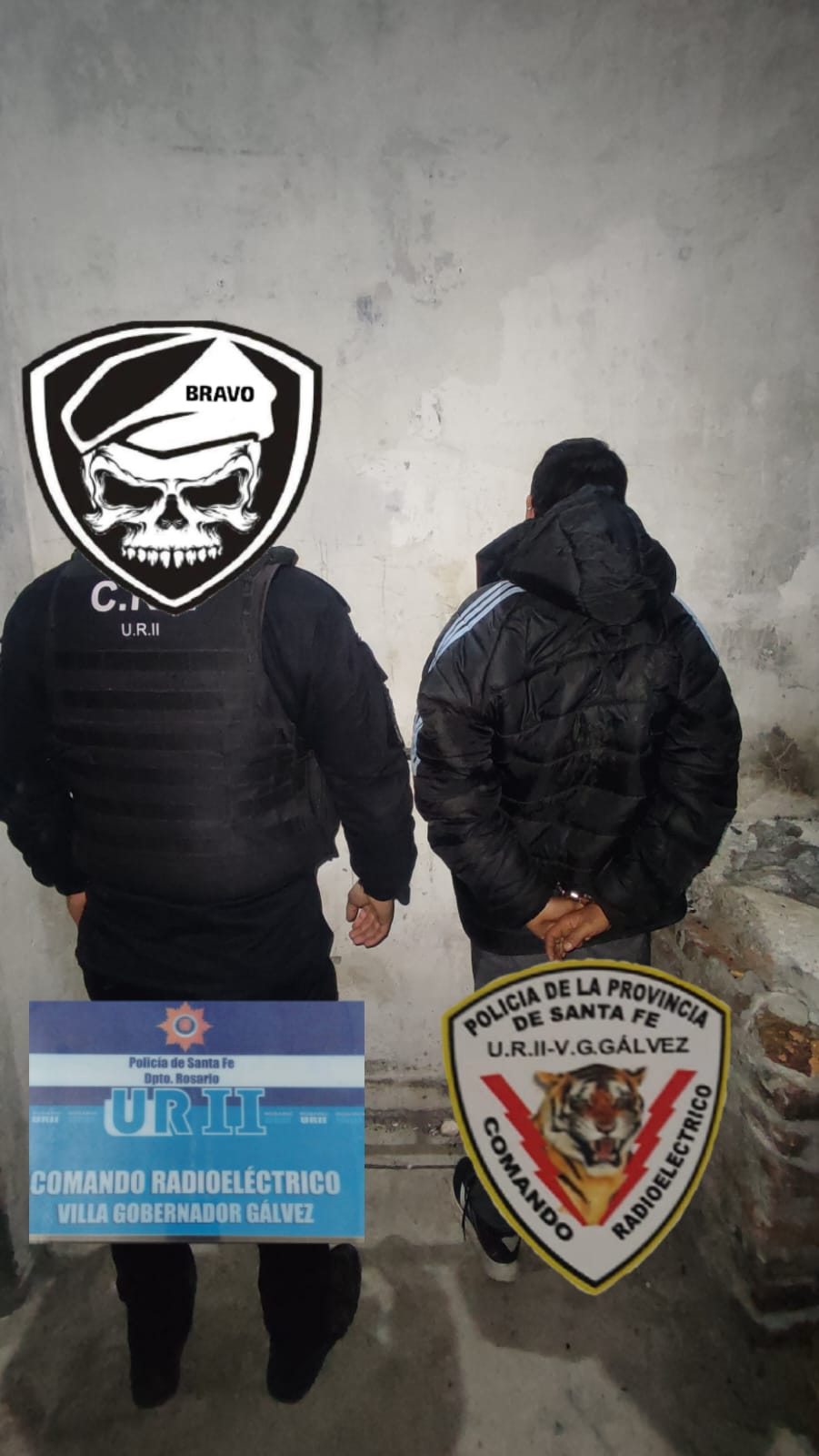 Minutos más tarde, la unidad 10548 del Comando Radioeléctrico de Villa Gobernador Gálvez logró la aprehensión de tres hombres mayores de edad, identificados como Carlos David (36), Jorge (31) y Eduardo (41).