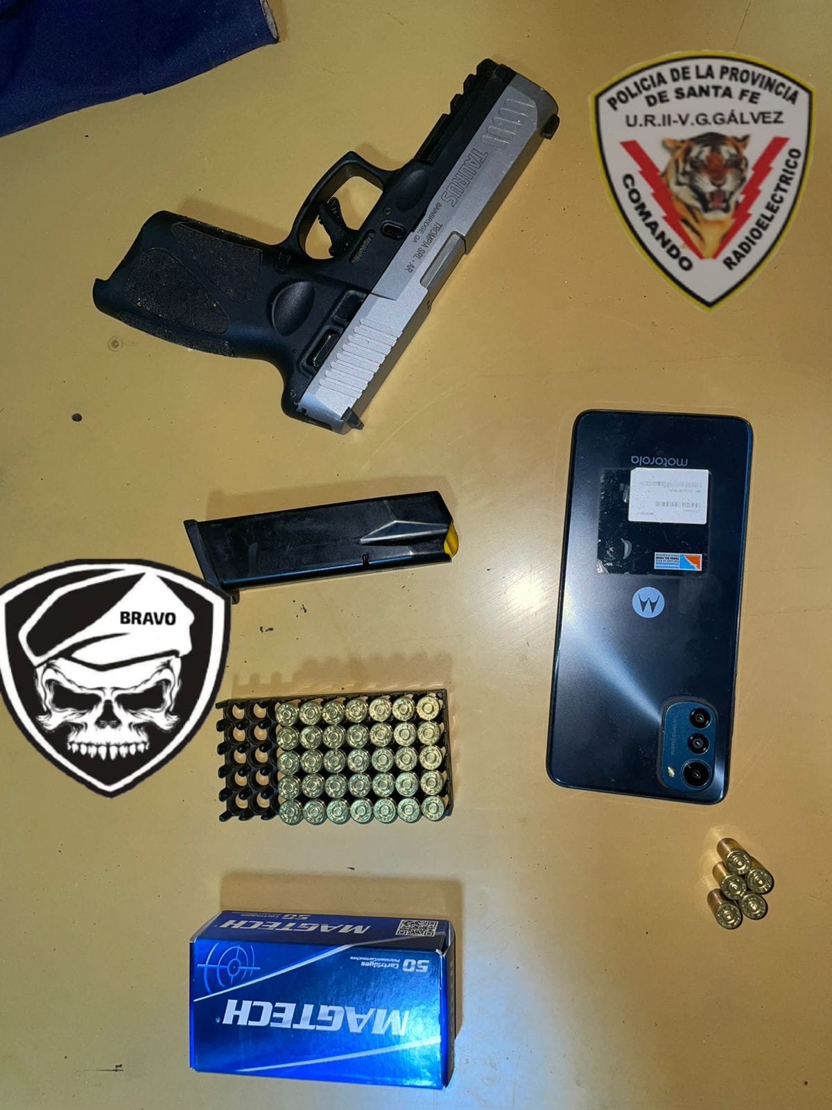 Durante el procedimiento se secuestró una pistola marca Taurus modelo G3 calibre 9 mm, con numeración visible, junto a una caja de 35 cartuchos intactos y varias vainas servidas halladas en el lugar.