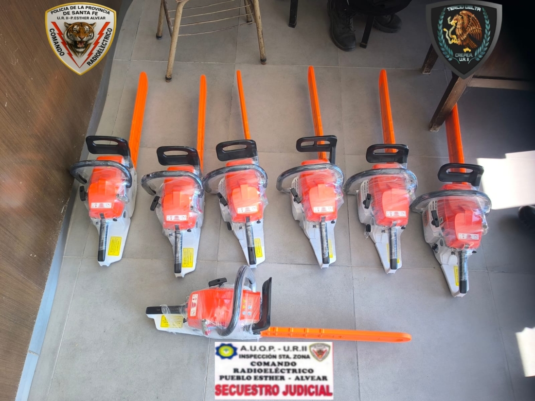 Al arribar al lugar, los efectivos constataron que los individuos se encontraban en un automóvil Fiat Tempra color verde claro, en cuyo interior había siete motosierras marca Stihl MS 382, color naranja y blanco.