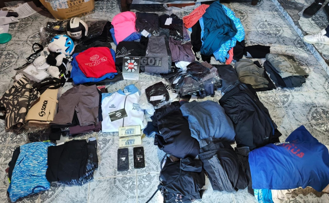 Durante el registro de los inmuebles, la PDI incautó la totalidad de la ropa robada, que se encontraba distribuida entre ambos domicilios. Entre los elementos secuestrados se contabilizaron numerosas prendas deportivas —calzas, buzos, camperas, mallas y remeras—, además de bolsas ecológicas y otros artículos reconocidos por la firma damnificada.