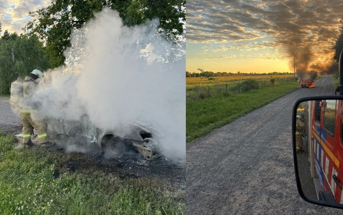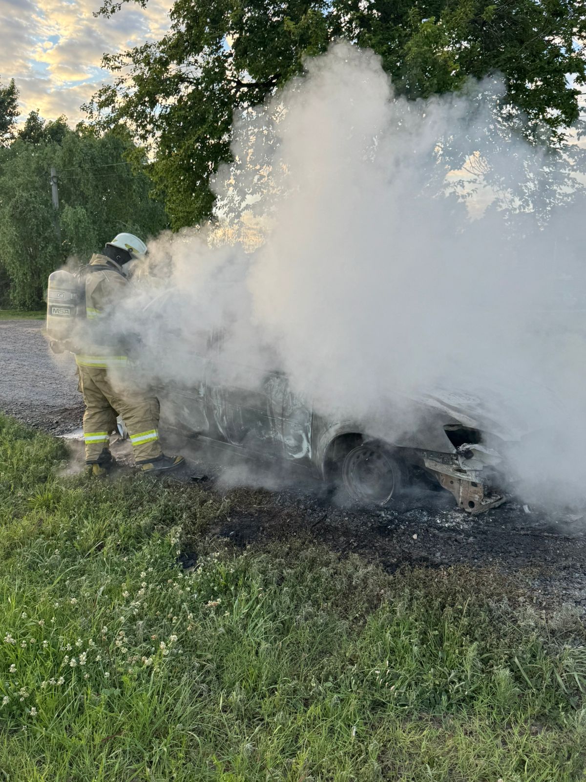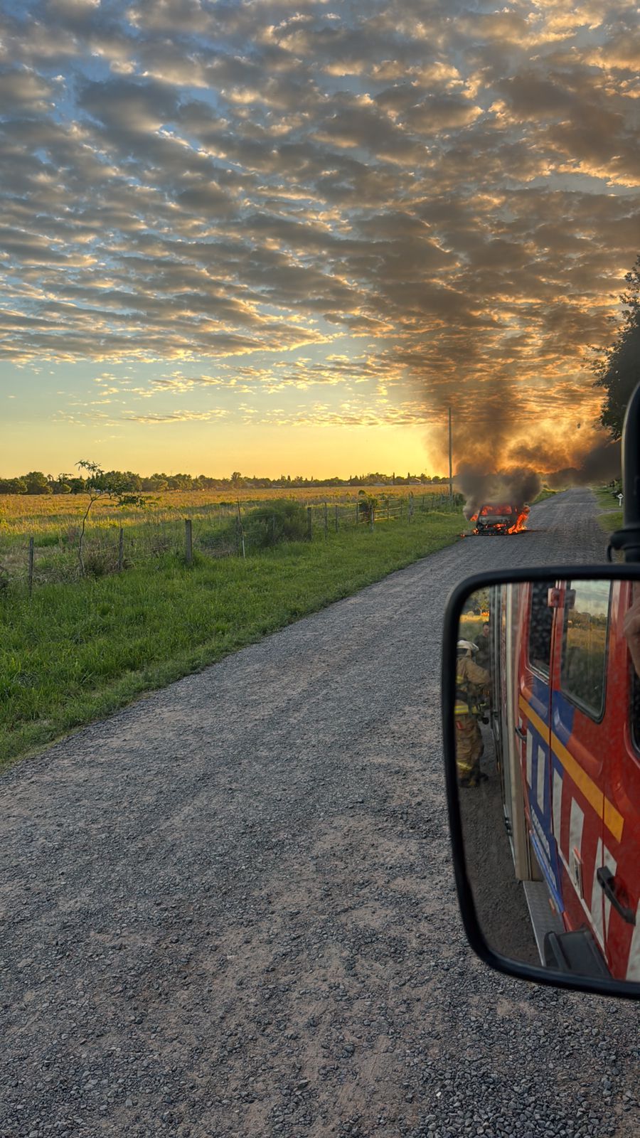 Una dotación de Bomberos Voluntarios acudió rápidamente al lugar y trabajó para extinguir las llamas que afectaron por completo al vehículo.