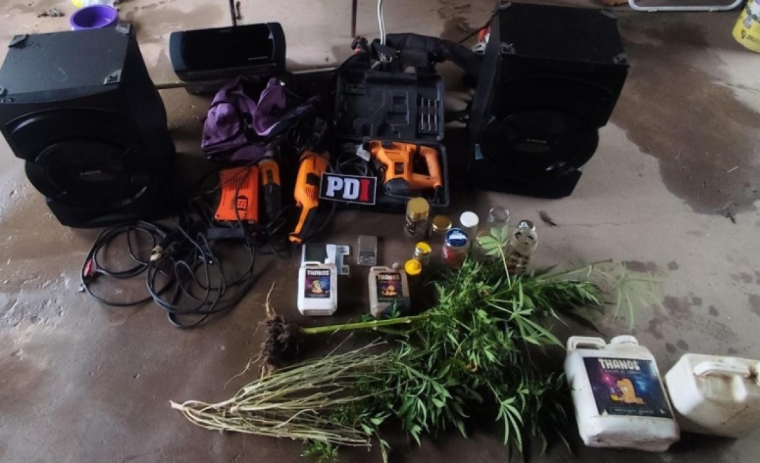 En uno de los operativos, los efectivos secuestraron diversos electrodomésticos, herramientas y material informático, además de plantas y elementos compatibles con el cultivo de cannabis. Entre lo incautado se destacan: un televisor, equipo de música, motoguadaña, rotomartillo, amoladoras, soldadora, sistema in door con fertilizantes y bioestimulantes, cuatro macetas con plantines de cannabis, dos plantas secas y una florada de 90 cm.