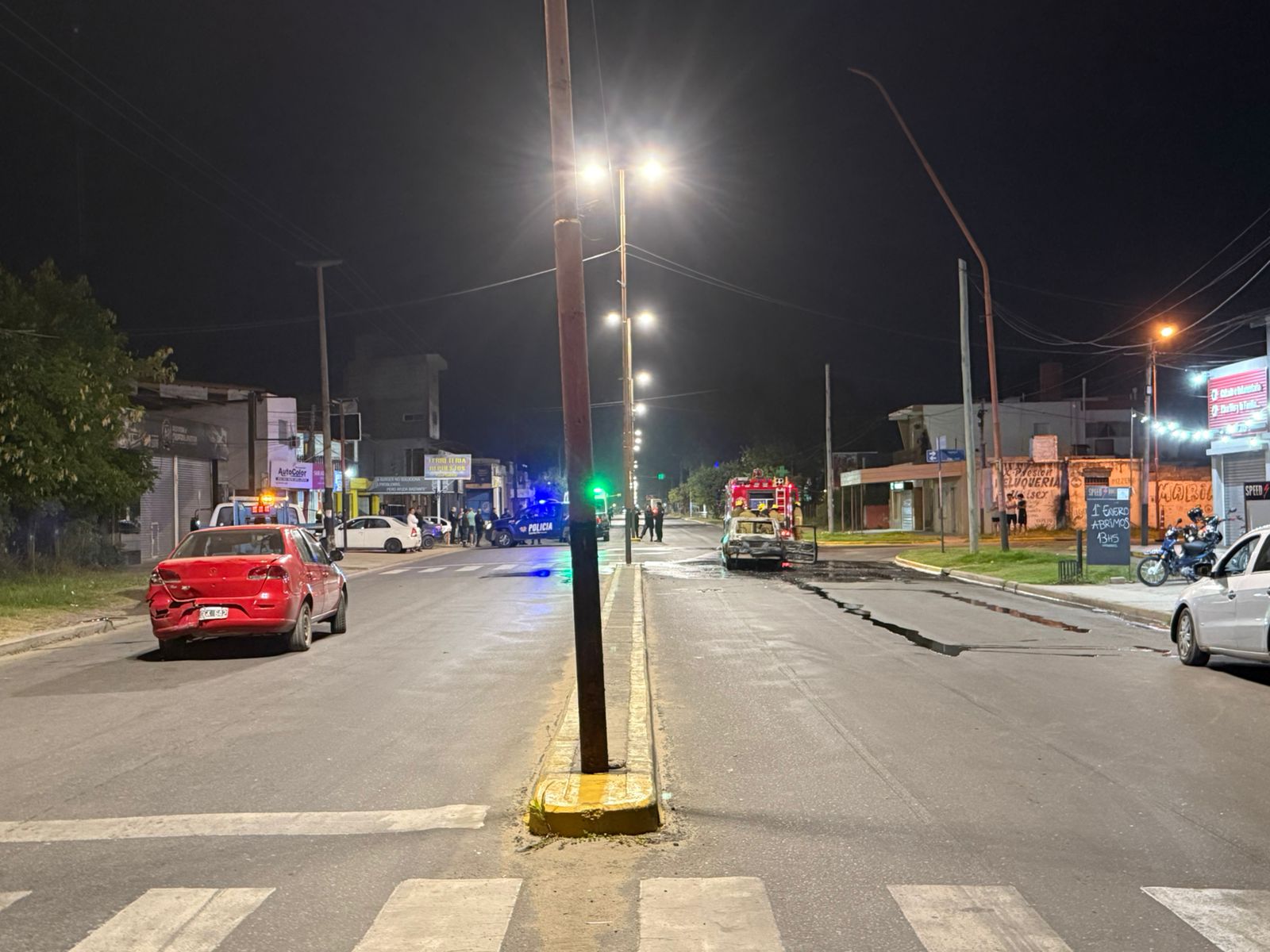 Un grave accidente de tránsito sacudió la tranquilidad de Villa Gobernador Gálvez en las primeras horas de este domingo. El choque, que tuvo lugar alrededor de las 02:50 horas, terminó con un automóvil completamente destruido por el fuego y dos personas con heridas de diversa consideración.