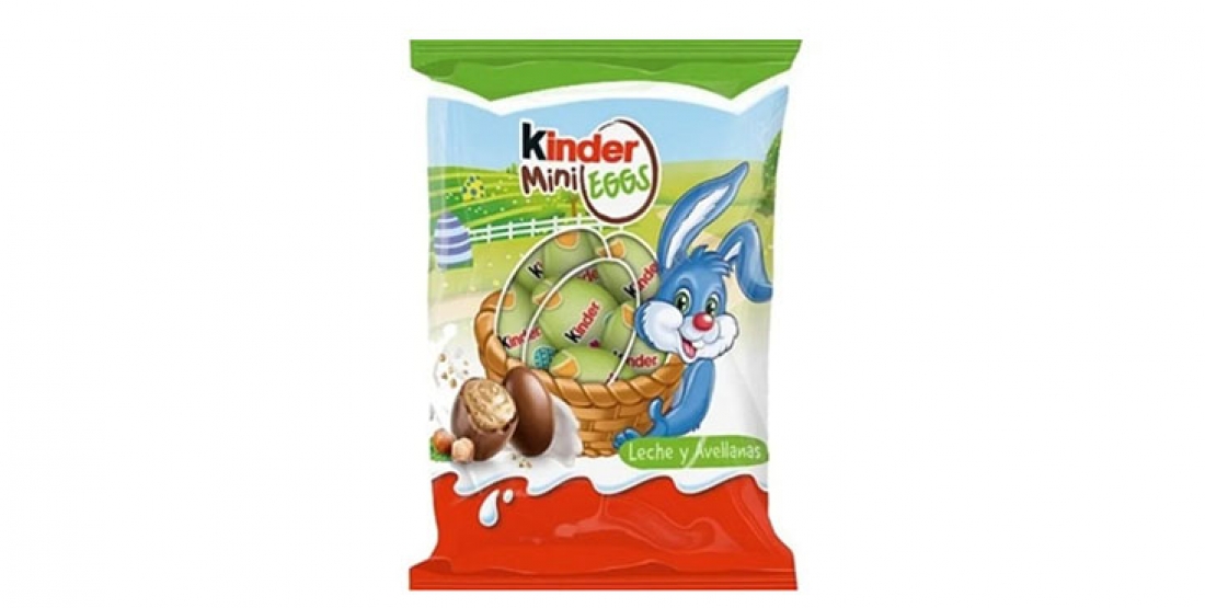 Bombón de chocolate con leche con relleno cremoso con avellanas nombre de fantasía MINI EGGS marca KINDER, RNPA 058-00-009949, RNE 00-035009, con fechas de vencimiento entre el 11 de julio de 2022 y el 21 de octubre de 2022.