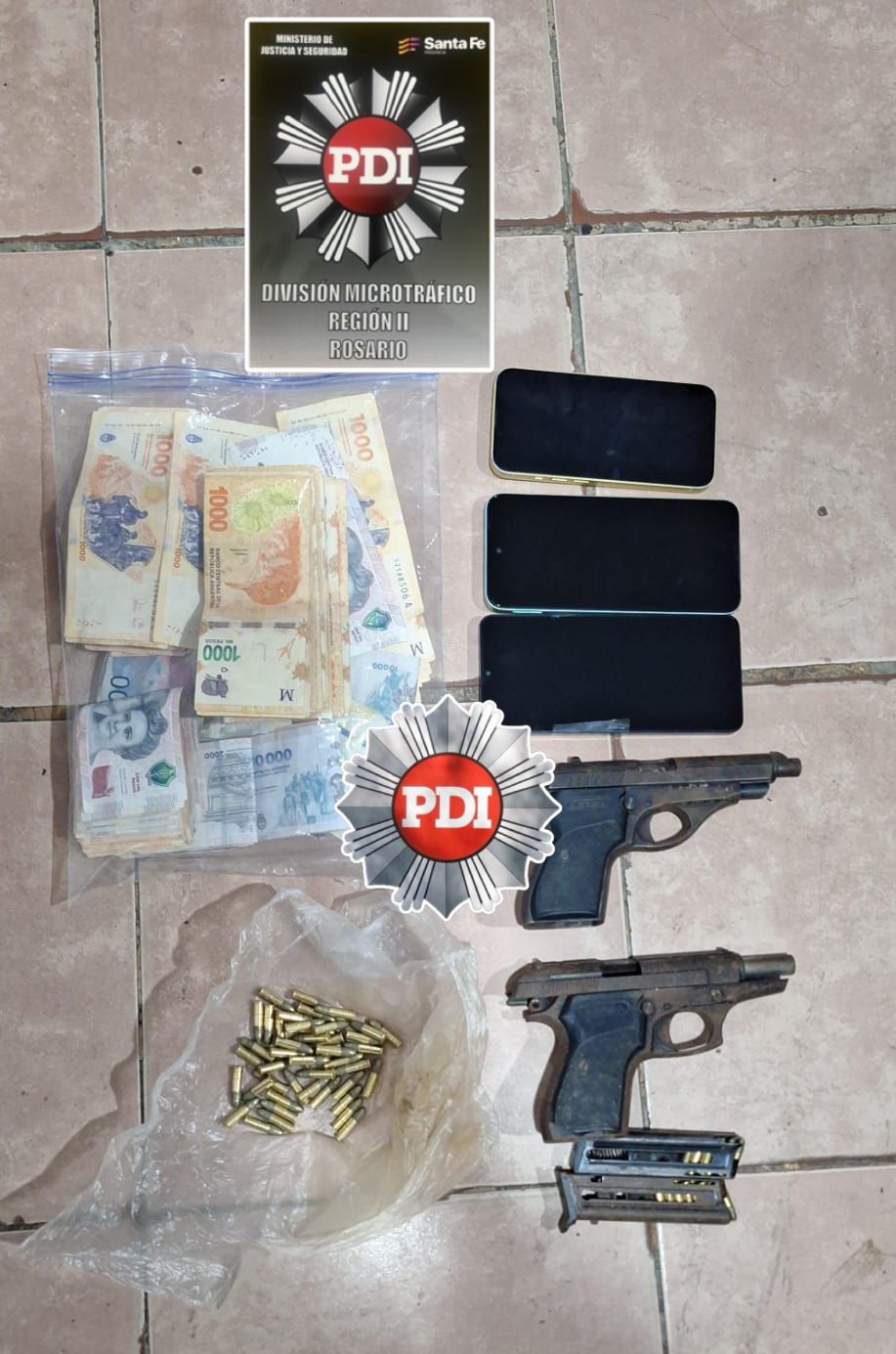 Personal de la Dirección General de Policía de Investigaciones (PDI), dependiente del Ministerio de Justicia y Seguridad, llevó adelante un importante operativo contra el microtráfico de estupefacientes que incluyó seis allanamientos simultáneos en las ciudades de Rosario y Villa Gobernador Gálvez, con un saldo de cuatro personas detenidas y el secuestro de droga, armas de fuego y una importante suma de dinero.